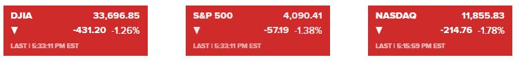 Unsurprisingly as rate markets repriced near term predictions of the Feds rate trajectory to the hawkish side, stocks took a hit, led down by the more risk and rate sensitive Nasdaq.